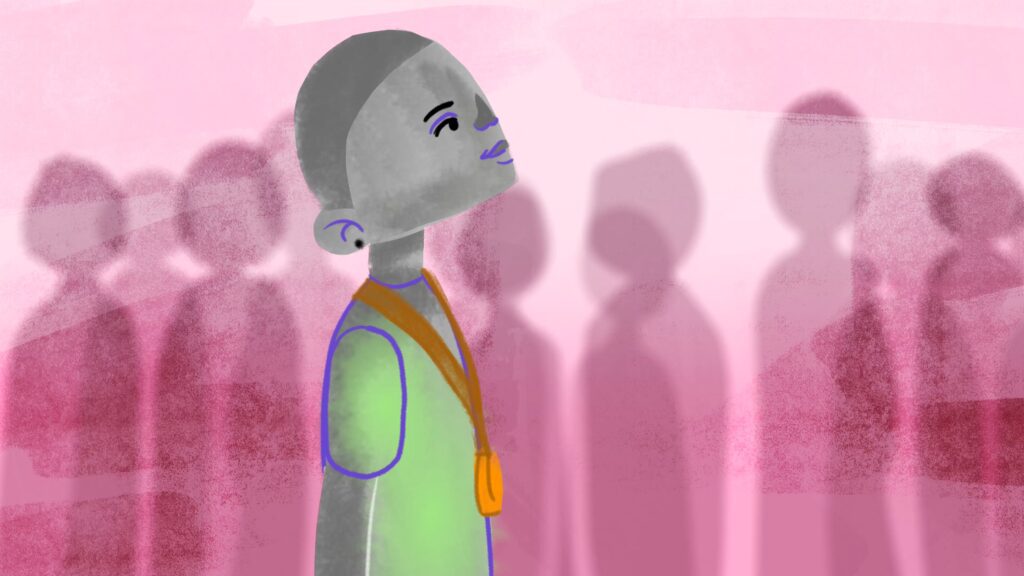 Visually, the film blends black-and-white interviews with colourful animation. I chose black and white for the interviews to strip away distractions and focus solely on the story. Later in the film, there is a shift to colour, reflecting how the subjects become more accepting of their identities. The animation style, particularly the abstract backgrounds, was inspired by the German Expressionist art movement that emphasised the artist’s inner emotions over realism. I deliberately avoided animated background characters, buildings, objects and activities in favour of abstraction, using crooked lines and shapes to symbolise a society that is rigid and restrictive in its understanding of gender.