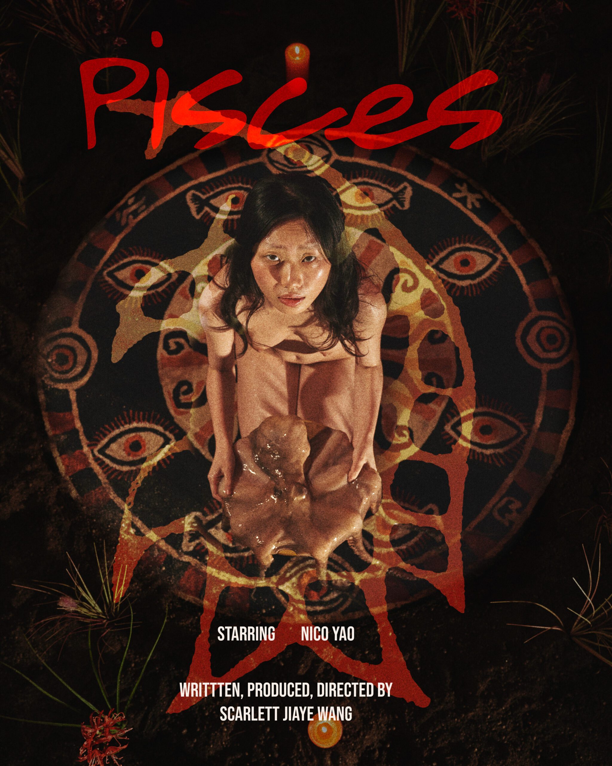 Pisces began as a private ritual—a poetic reflection on former love, obsession, destruction, and rebirth. The short film weaves together two threads of interest: my former partner (the protagonist)’s obsession with the Cthulhu mythos and destructive sexuality, and my own ongoing exploration of Chinese folk religion, Nuo ritual, and Five Elements philosophy. After our first deep conversation in four years following our breakup, I sought to transform that belated encounter into a ritual enacted through art.